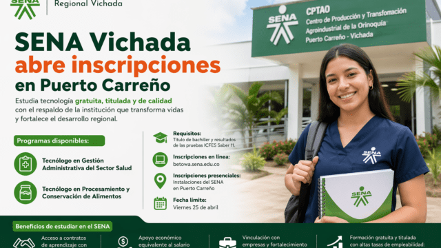 SENA Vichada abre inscripciones para programas tecnológicos en Puerto Carreño El Centro de Producción y Transformación Agroindustrial de la Orinoquía...