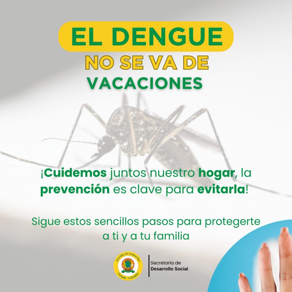 Cumaribo, Vichada – Ante la amenaza constante del dengue, la mejor defensa es la prevención. Las autoridades de salud hacen un llamado a la comunidad para reforzar las medidas de protección y evitar la proliferación del mosquito transmisor de esta enfermedad.