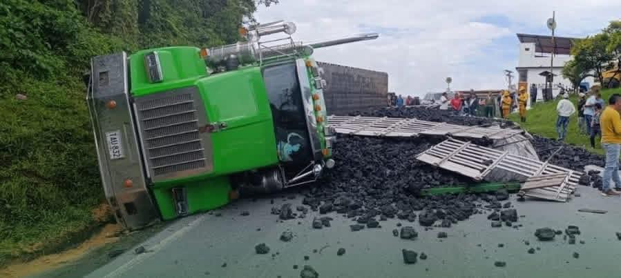 Volcamiento de tractomula con carbón genera afectaciones viales en Boyacá