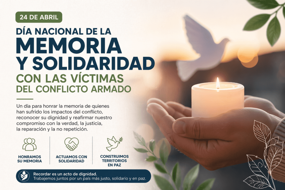 Este 24 de abril se conmemora el Día Nacional de la Memoria y Solidaridad con las Víctimas del Conflicto Armado, una fecha de profundo significado para el país que invita a la reflexión, el reconocimiento y la construcción colectiva de un futuro en paz. Esta jornada representa un espacio para honrar la memoria de quienes han sufrido las consecuencias de la violencia, así como para exaltar su resiliencia, dignidad y capacidad de reconstruir sus proyectos de vida.